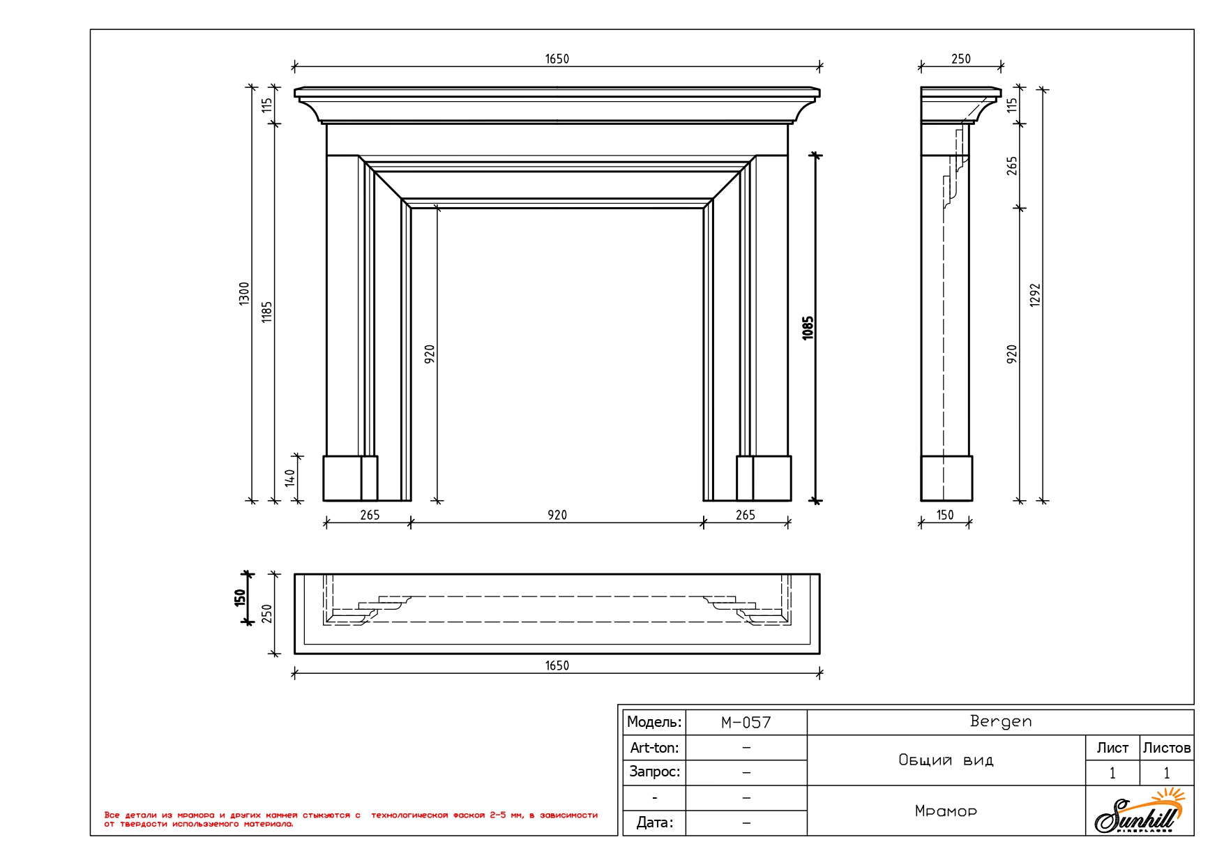 На картинке и на чертеже представлена стандартная модель камина. При желании клиента камин по данному дизайну можно изготовить по индивидуальным размерам и под топки разных производителей. Выбор камня (породы дерева) не ограничен.
