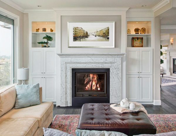 М-057 Мрамор Bianco Carrara (Италия), топка Seguin (Франция). Опция — камень вокруг топки и под камином.