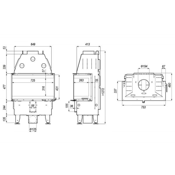 Топка камина отделана специальной керамикой CERAMITON – связка сочетание шамота с бетоном и несколькими другими компонентами. Это чрезвычайно прочный материал, который выдерживает высокие температуры и уменьшает прямое воздействие огня на стенки топки. Вставки комплектуются двумя цветами шамотной керамики: светлой – без пигментации и темной с добавлением натурального красителя — за счет этого цена будет дороже. Выбор отделки топочной камеры делается на выбор, исходя из пожеланий заказчика.