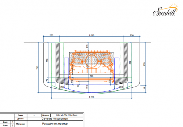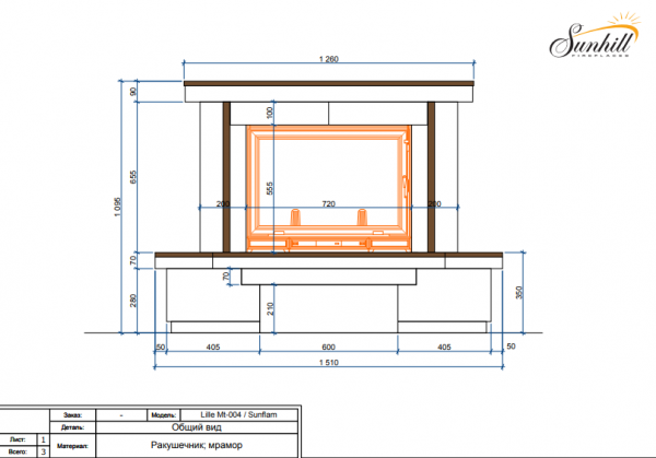 На картинке и на чертеже представлена стандартная модель камина. При желании клиента камин по данному дизайну можно изготовить по индивидуальным размерам и под топки разных производителей. Выбор камня (породы дерева) не ограничен.