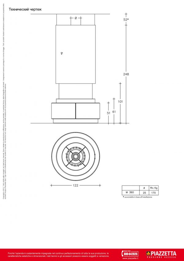 Полукруглые элементы из майолики ручной работы украшены тонким барельефом, а цвет элементов можно выбрать из палитры Piazzetta. Стальные опора основания, обрамление и кожух отделаны эмалью черного цвета. Камин оснащен эксклюзивным электронным механизмом подъема-спуска защитного стекла.